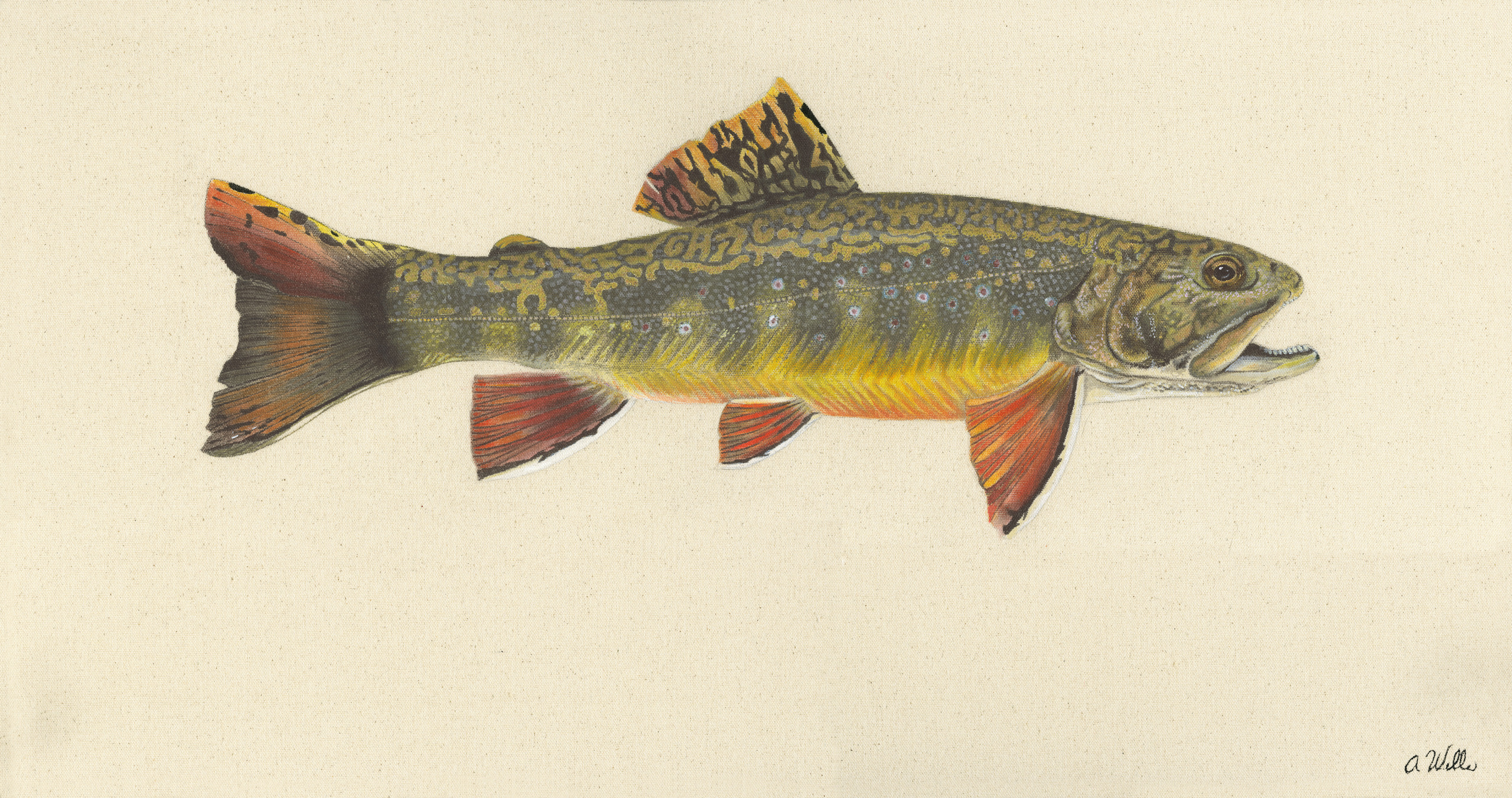 Ole Brookie was painted after catching a Brook trout on the Nantahala River in North Carolina. The colors I added to his face make him look like an old man to me so that’s how he got his name.
